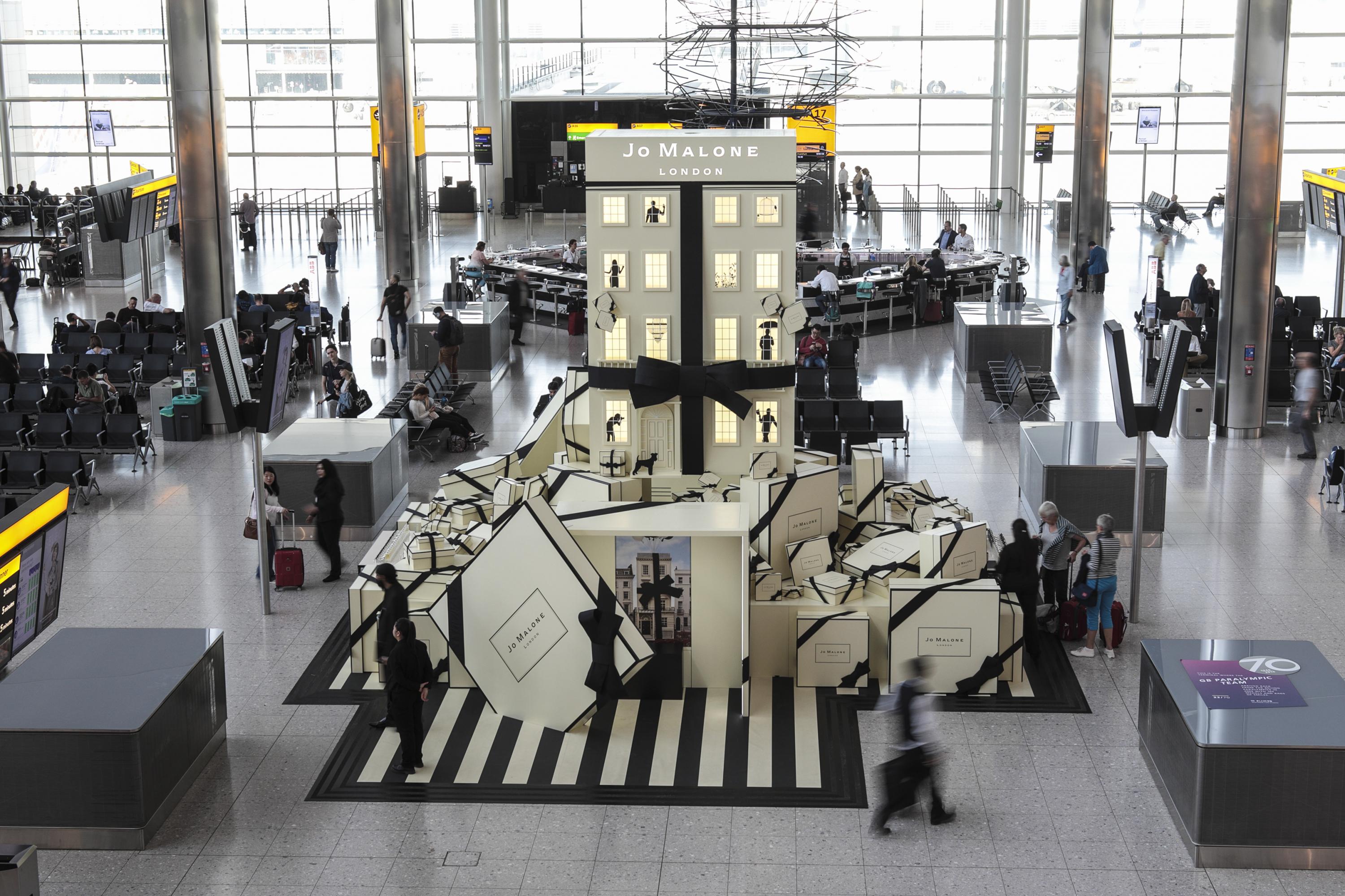 Working closely with Estée Lauder, we brought the iconic Jo Malone ‘Travelling Townhouse’ to the heart of Heathrow. Six metres tall, the townhouse was surrounded by 100+ bespoke Jo Malone boxes. The experiential campaign also included two large immersive boxes in which customers could interact with a digital experience.