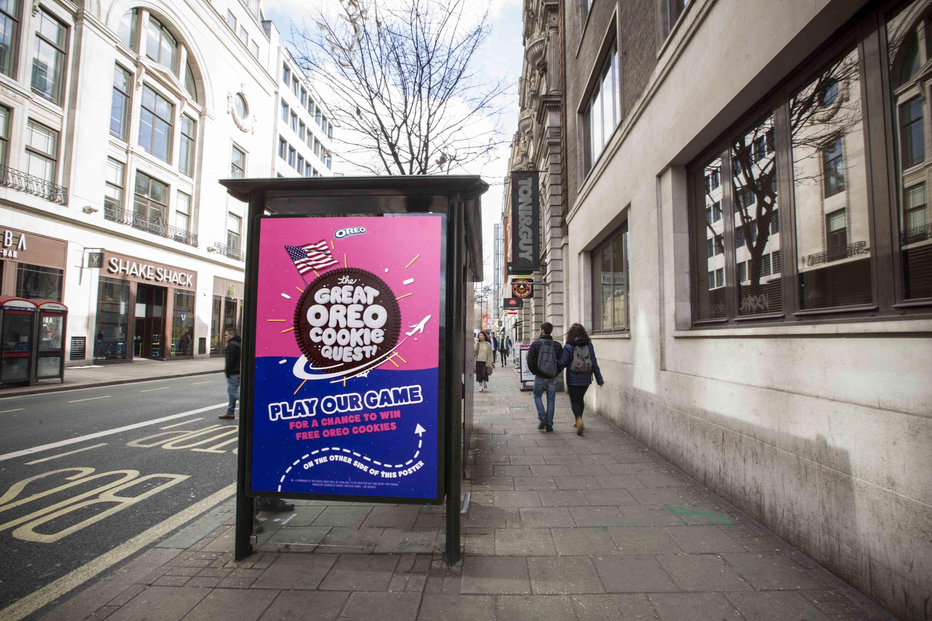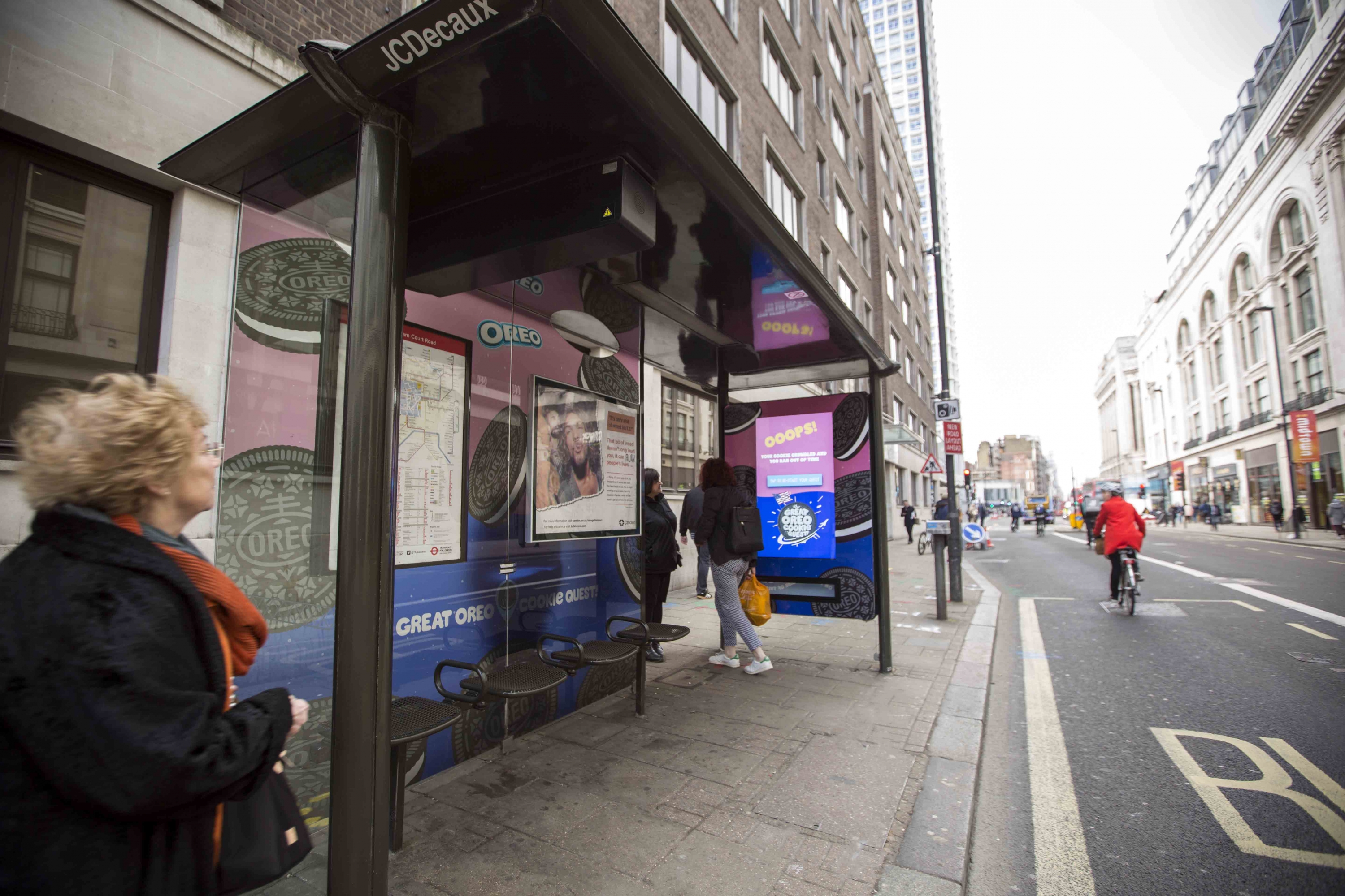 Oreo launched a dispensing 6-sheet at a key Tottenham Court Road location. Consumers played a simple game, where upon completion, were dispensed a free packet of Oreo cookies. The campaign was also inclusive of a full vinyl wrap of the shelter, providing a fully immersive, eye-catching experience.