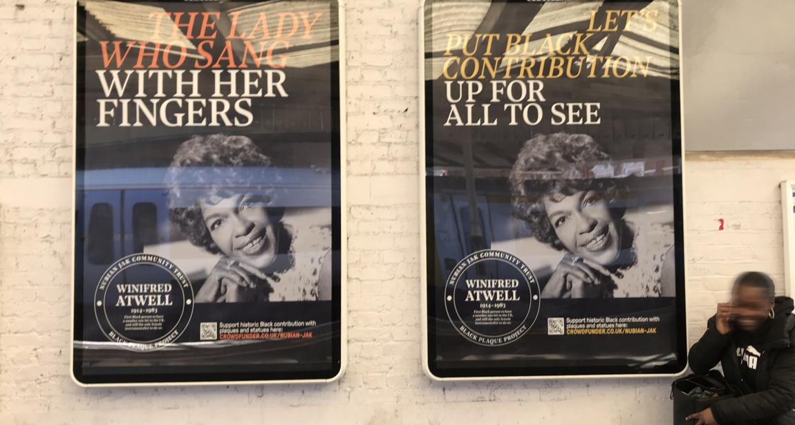 In addition to the UK-wide Out-of-Home campaign, a high-impact takeover of media space at Brixton Rail Station (Atlantic Road/Brixton Station Road in London) pays tribute to the pianist Winifred Atwell as “the lady that sang with her fingers”. Winifred was the first black person to have a number one hit in the UK and is still the only female instrumentalist to achieve this. In 2020, the Black Plaque project placed a plaque for Winifred Atwell at 69 Chaucer Road, SE24 in South London.